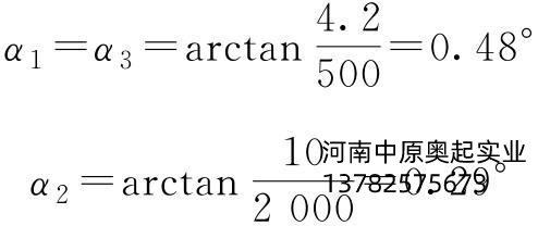 以小车(双梁4轨)主2、主3轨道轨距2m,主、副轨道轨距0.5m为例(罕见),计算车轮群台车的*大偏斜角α为