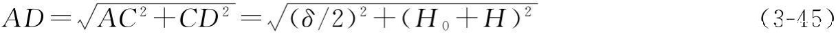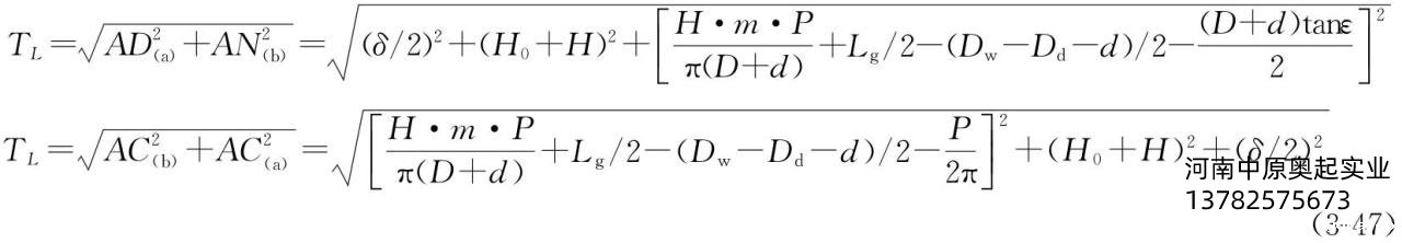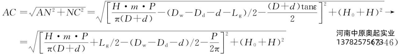 式中参数和本章前面介绍相同,δ、H0、H都可在设计时获得数据,在面对卷筒主视平面,所求长度为AC在图3-55(b)平面的距离: